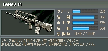 AKよりも連射が速く反動も低い銃。AKより威力は多少低いが、反動が低く命中率も威力も申し分ないため、使ってる人が多い武器の1つである。 |